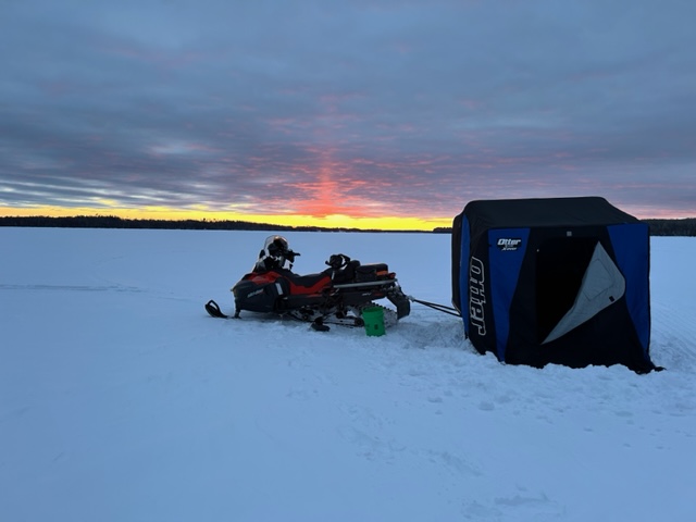 Last night’s sunset while one of our guests was out fishing. This morning it was minus 19C with plenty of sun and there’s hoar frost in the trees, making for a beautiful morning. Temperatures will rise to above freezing this afternoon perfect time to go fishing!