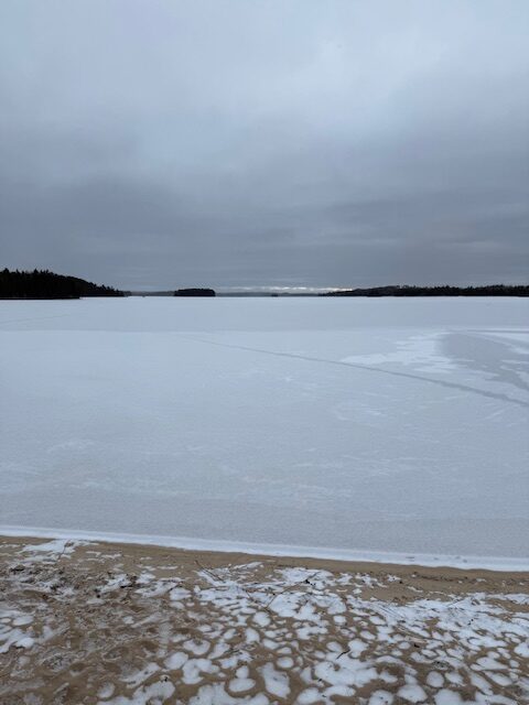 Well, we can say the lake froze the end of November. We won’t be going out on it any time too soon but with continuing cold temperatures I expect by next weekend we could see how thick the ice is.