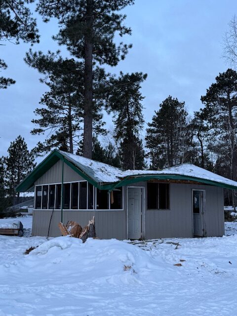 Don had some help from friends and the tree is off the fish house. Now he can see exactly what damages he has to repair. Looks like the rafters will need to be replaced.