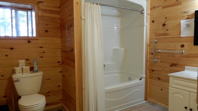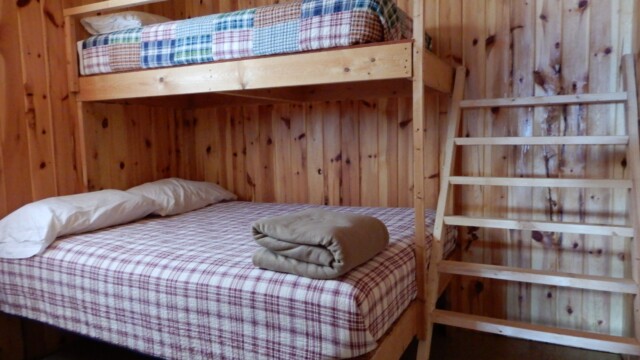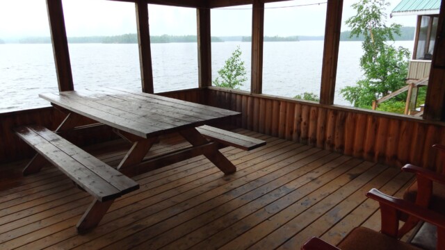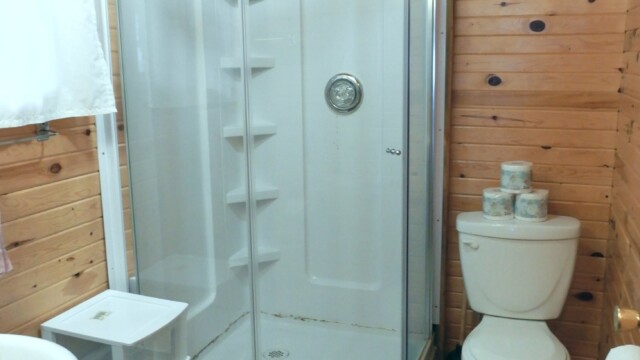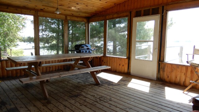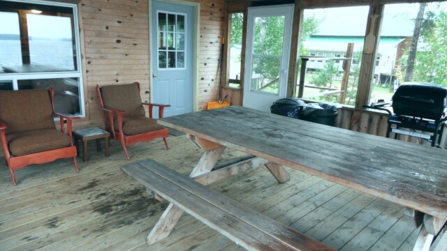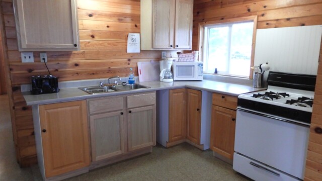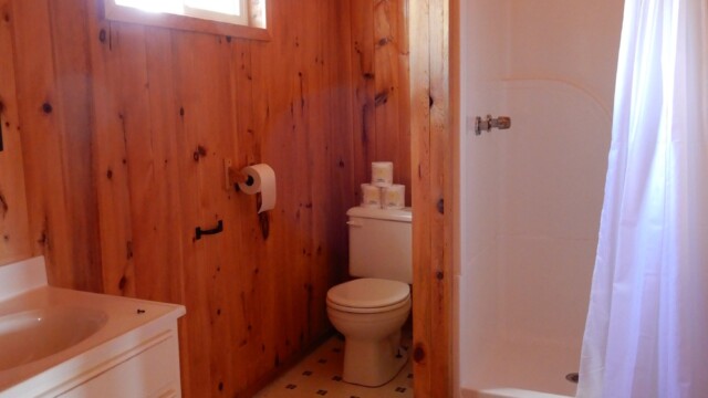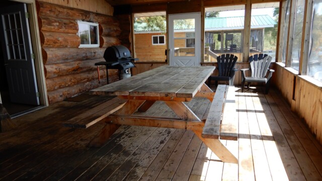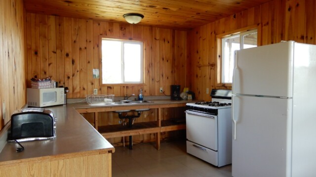 All cabins have a screened-in deck for enjoying a coffee or cocktail bug-free. Each cabin has a fully equipped kitchen, with propane stove, a full-sized fridge, and propane barbeque. They also have hot and cold running water and indoor bathroom facilities. Cabins at this location also currently have satellite TVs.