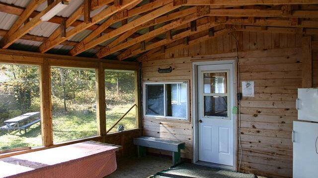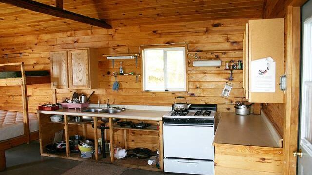 Each cabin has a screened-in deck for enjoying a coffee or cocktail bug-free. They have solar-powered lights, hot and cold running water, and shower facilities. Each cabin also has a fully equipped kitchen with full size solar-powered fridge, propane stove, and propane barbeque.