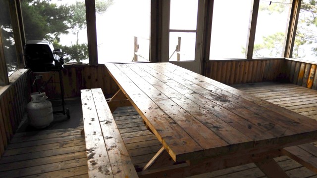 All cabins have a screened-in deck for enjoying a coffee or cocktail bug-free. Each cabin has a fully equipped kitchen, with propane stove, a full-sized fridge, and propane barbeque. They also have hot and cold running water and indoor bathroom facilities. Cabins at this location also currently have satellite TVs.